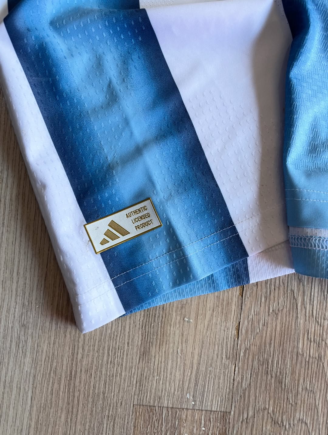 کیت اول آرژانتین جامجهانی ۲۰۲۶ با دیاِنای تیمی ساخته شده که آخرین جام رو بالای سر برد؛ اما این بار با جزئیات خفنتر، کیفیت بهتر و طراحی تمیزتر. راهراههای کلاسیک، لوگوی طلایی قهرمانی، و ترکیب رنگهایی که هر فوتبالی فهمی رو یاد لحظههای تاریخساز قطر میندازه. یه کیت برای کسایی که قهرمانی رو حس کردن، نه فقط دیدن. ورژن پلیری (Player Version) کیفیت مستر – جزئیات طلایی و خفن پارچه خنک و فیت عالی روی تن. ورژن پلیری کیفیت مستر لوگو ژلاتینی پارچه تنفسی و فیت عالی روی تن تایلندی AAA+ سایزبندی: S,M,L,Xl,XXL