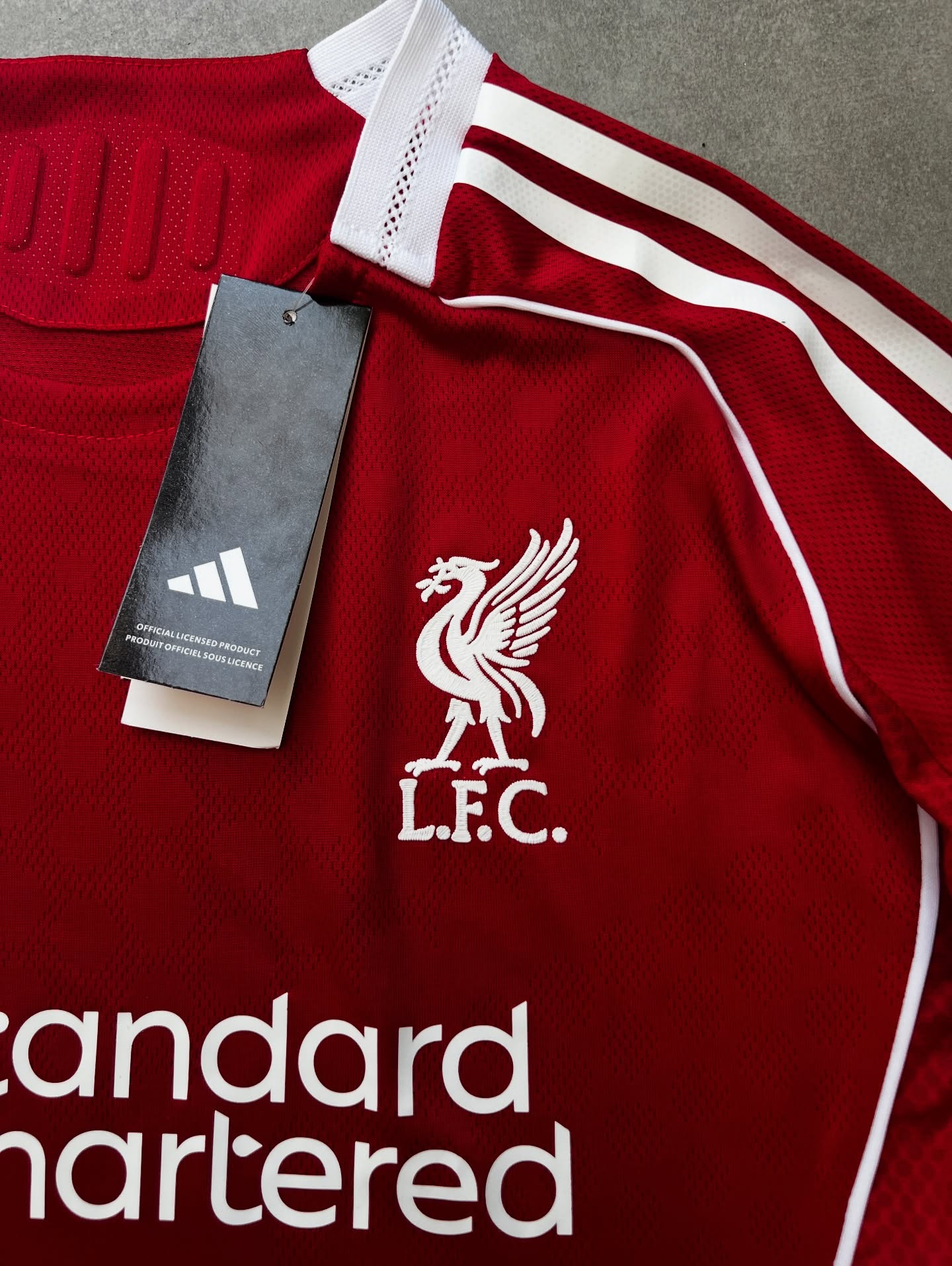 کیت اول لیورپول ۲۰۲۵/۲۶ کیفیت مستر لوگو ژلاتینی + پارچه تنفسی حرفهای فیت عالی روی تن. سایزبندی S.M.L,Xl.XXL